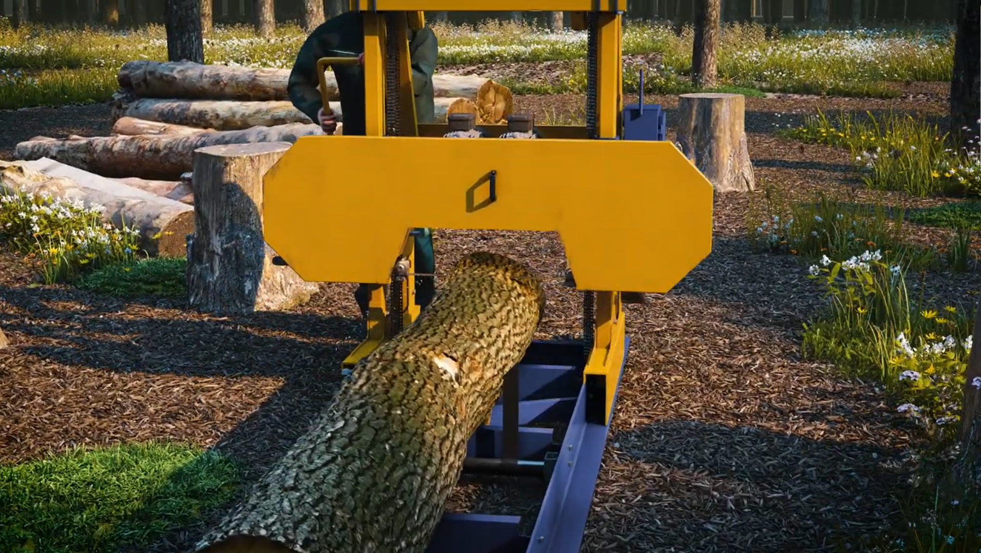 - řezání kmenů na trámy a desky